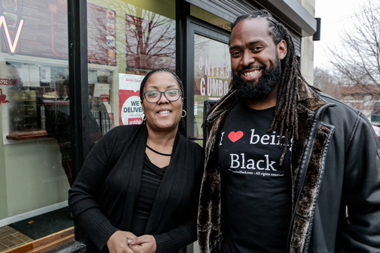 ![]() Cynjora Ross, Manager, and The Hungry Black Man outside Nita's Gumbo. |